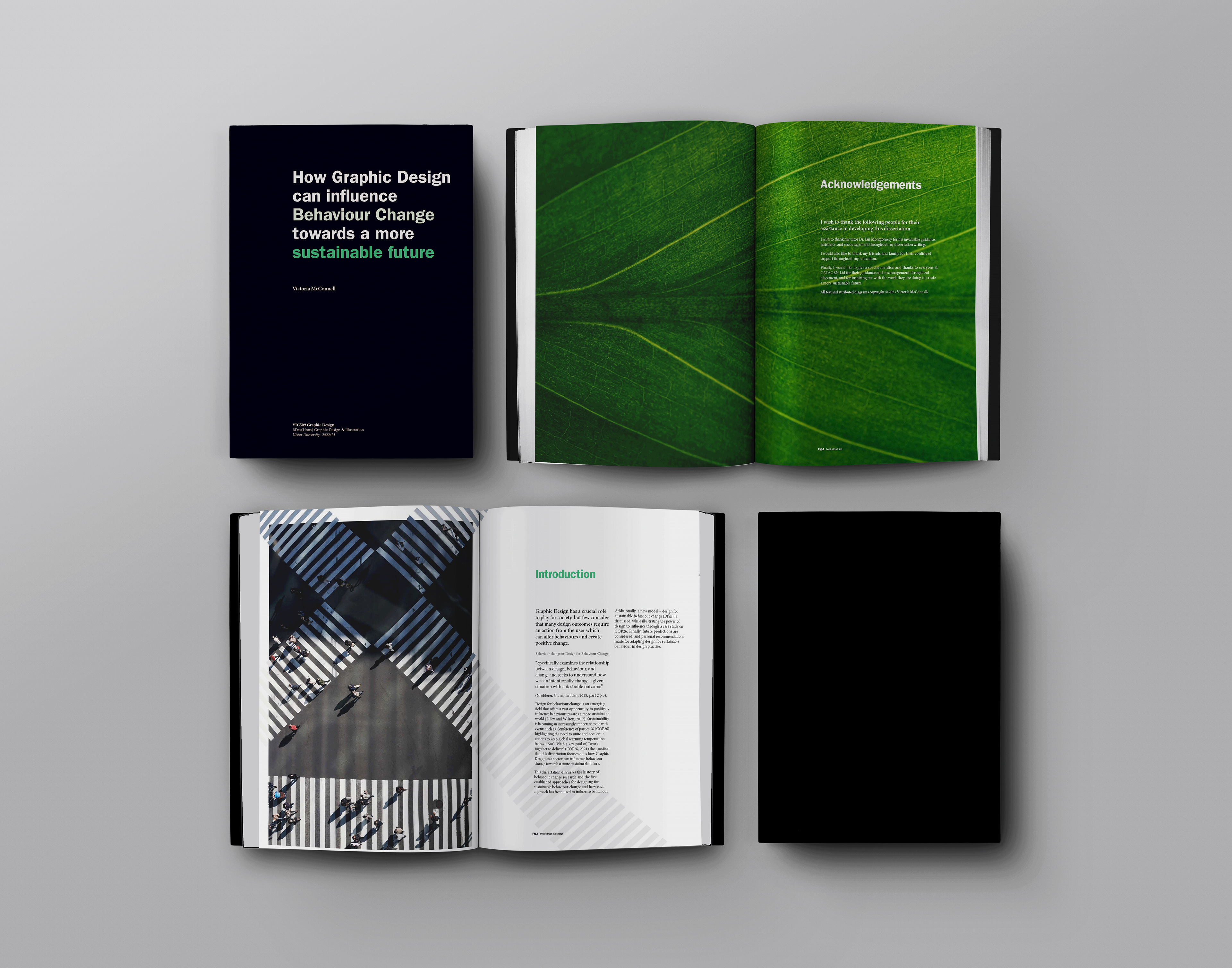 As a result I used my dissertation to look at the approaches, tools, and models which the designer can use to change behaviour to shape a more sustainable future. While also demonstrating the power of the graphic designer to influence behaviour when using these approaches, tools, and models through examples, before highlighting a new research model – Design for Sustainable behaviour change (DfSB).
